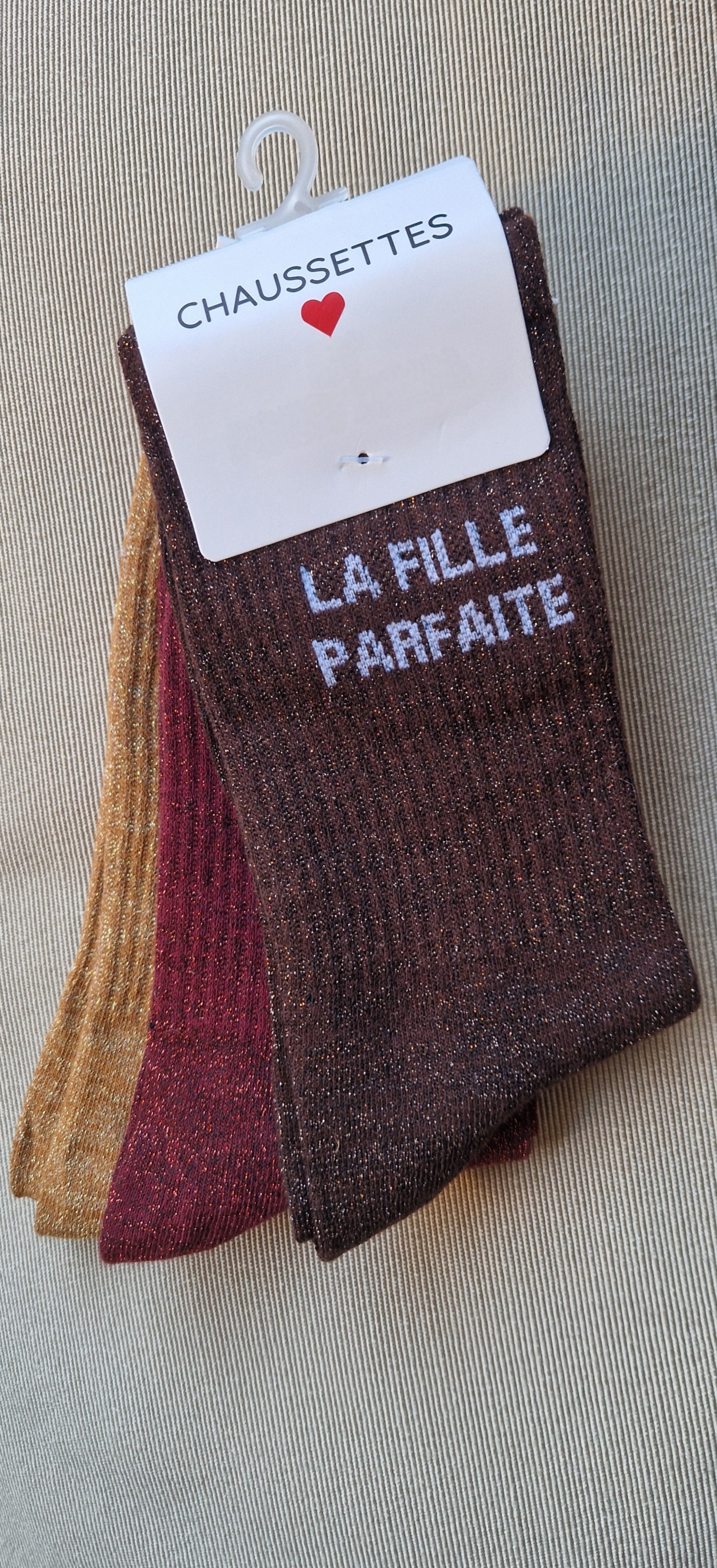 "LA FILLE PARFAITE" Chaussettes marrons lurex