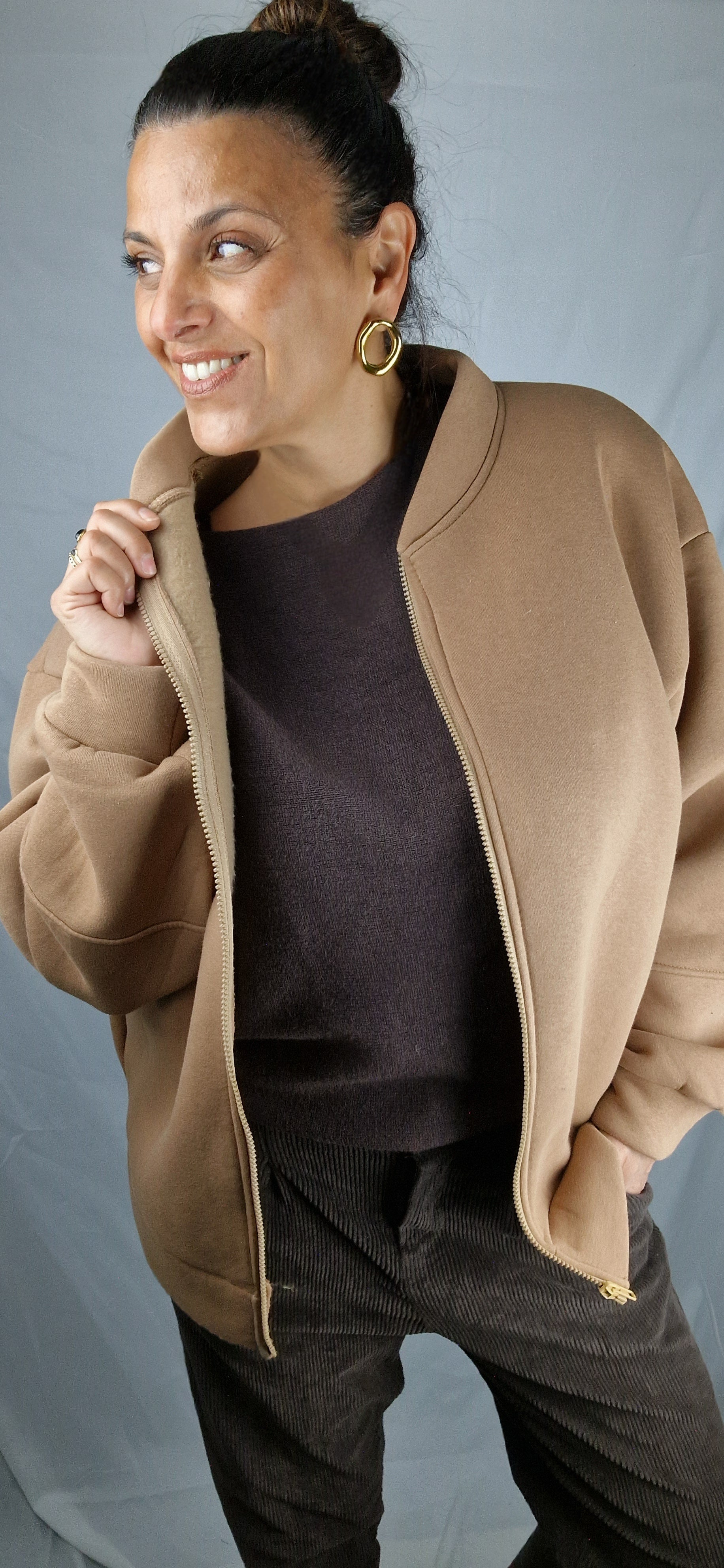 Une veste zippée en molleton 100 % coton, douce et confortable.