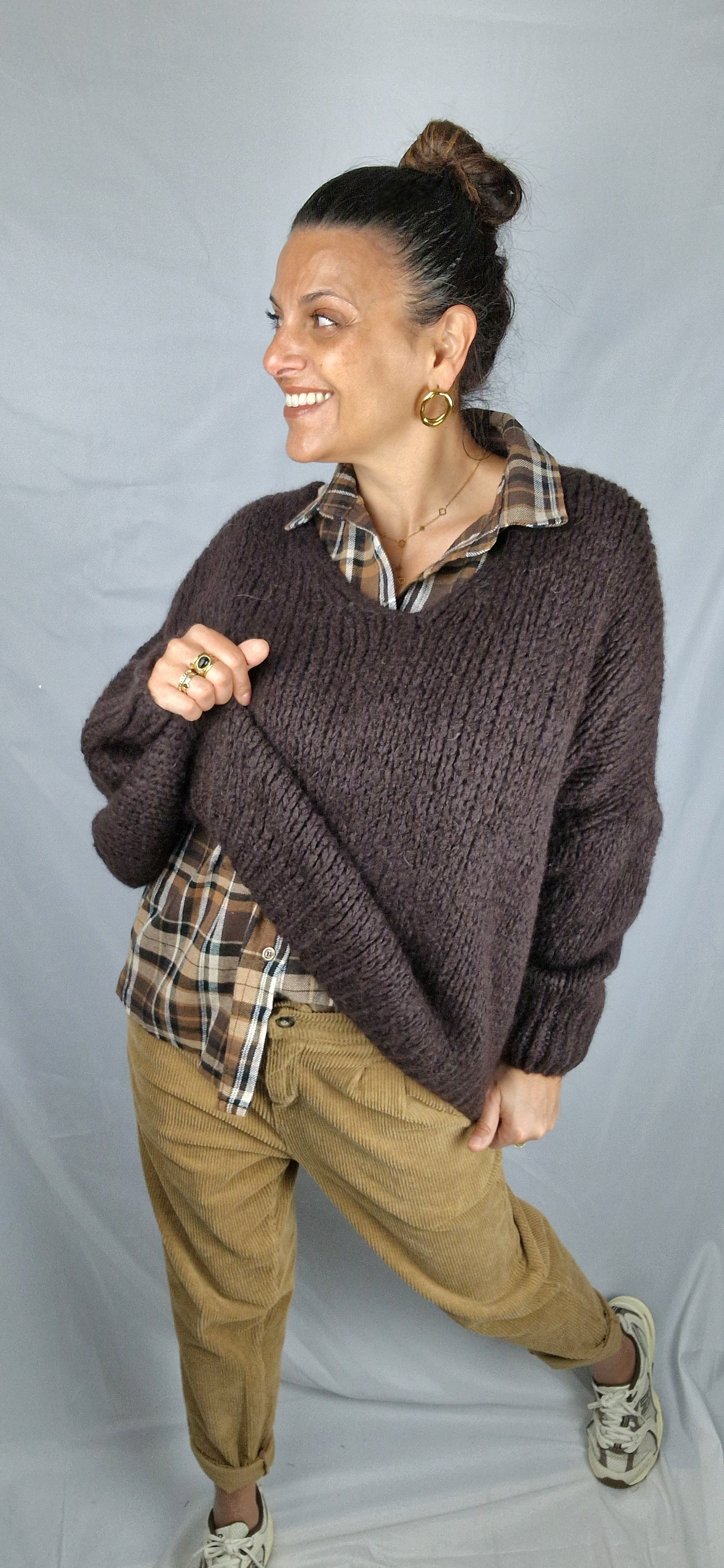 Enveloppez-vous de douceur avec ce pull oversize en grosse maille, parfait pour des moments cocooning. Son coloris chocolat apporte une touche lumineuse et chaleureuse à vos tenues. Confortable et moelleux, il se porte facilement grâce à sa coupe oversize.